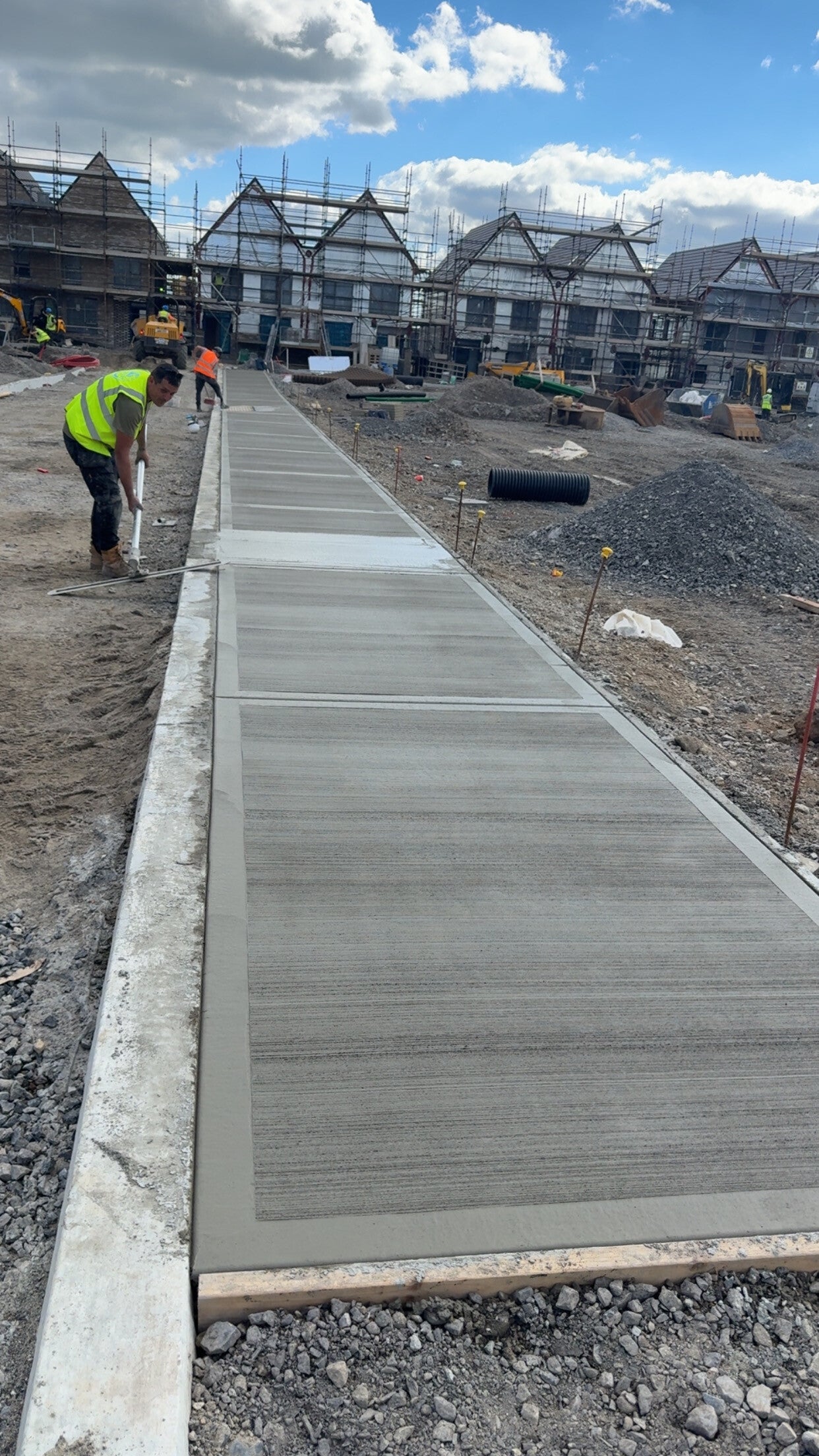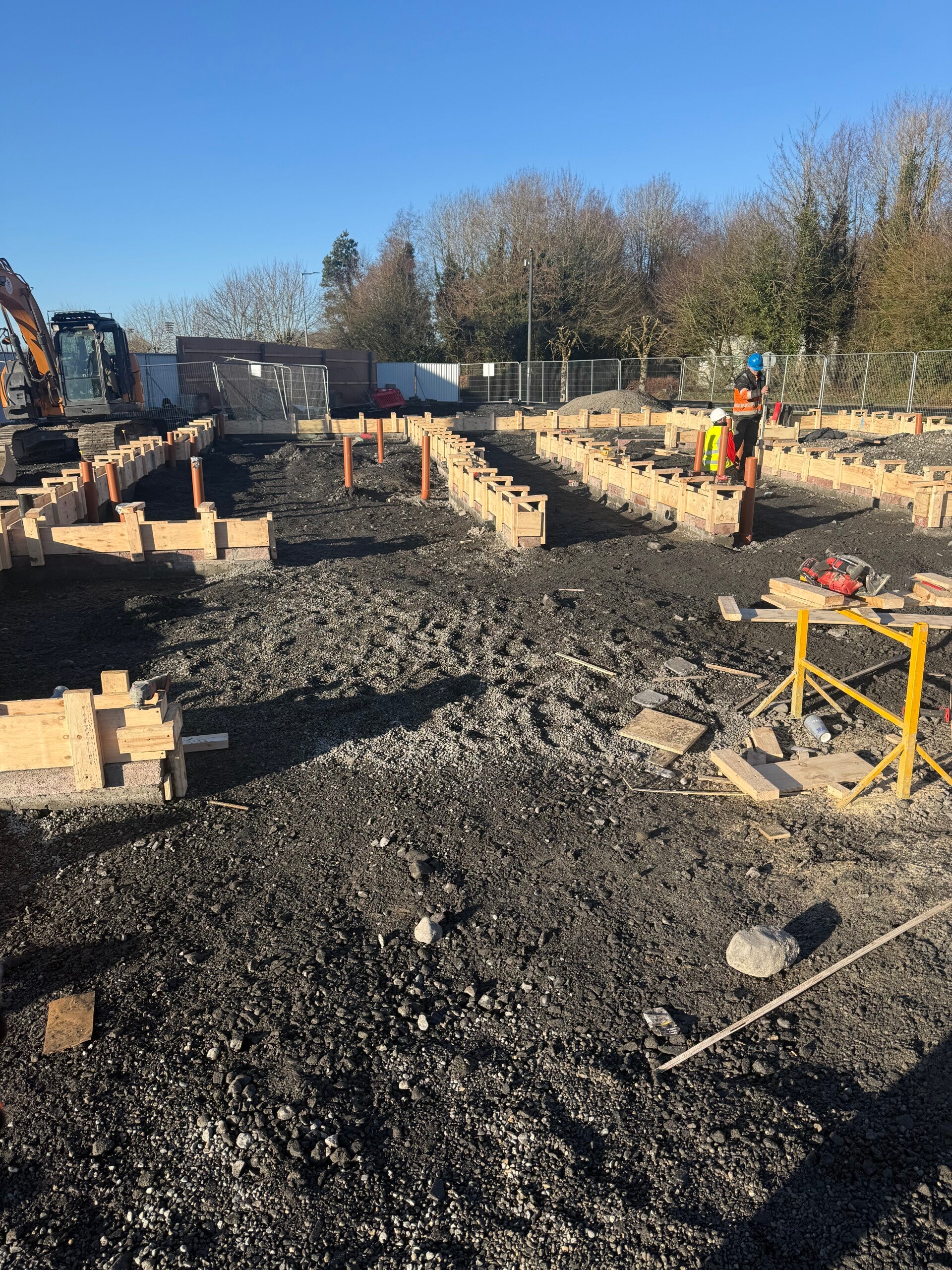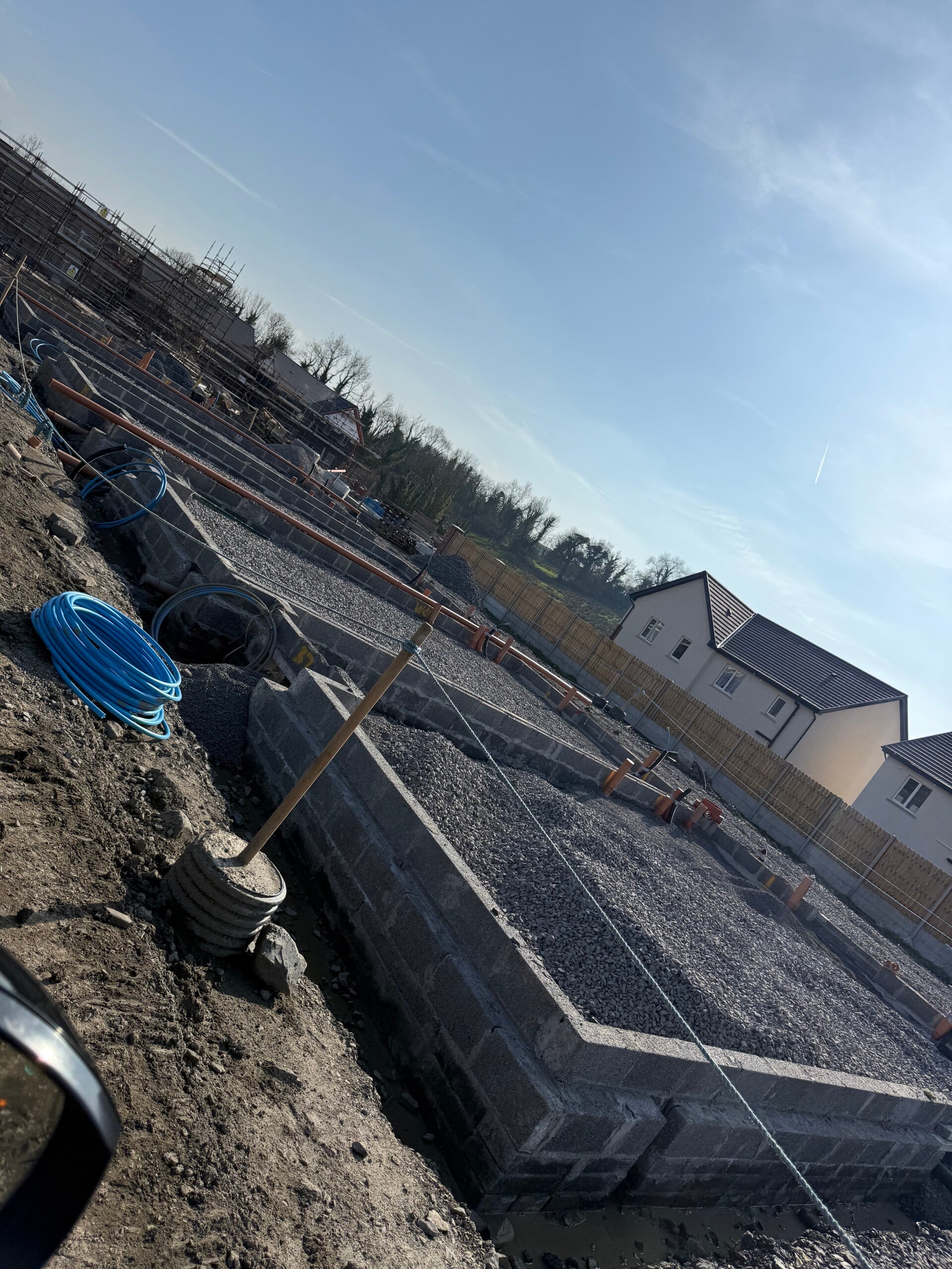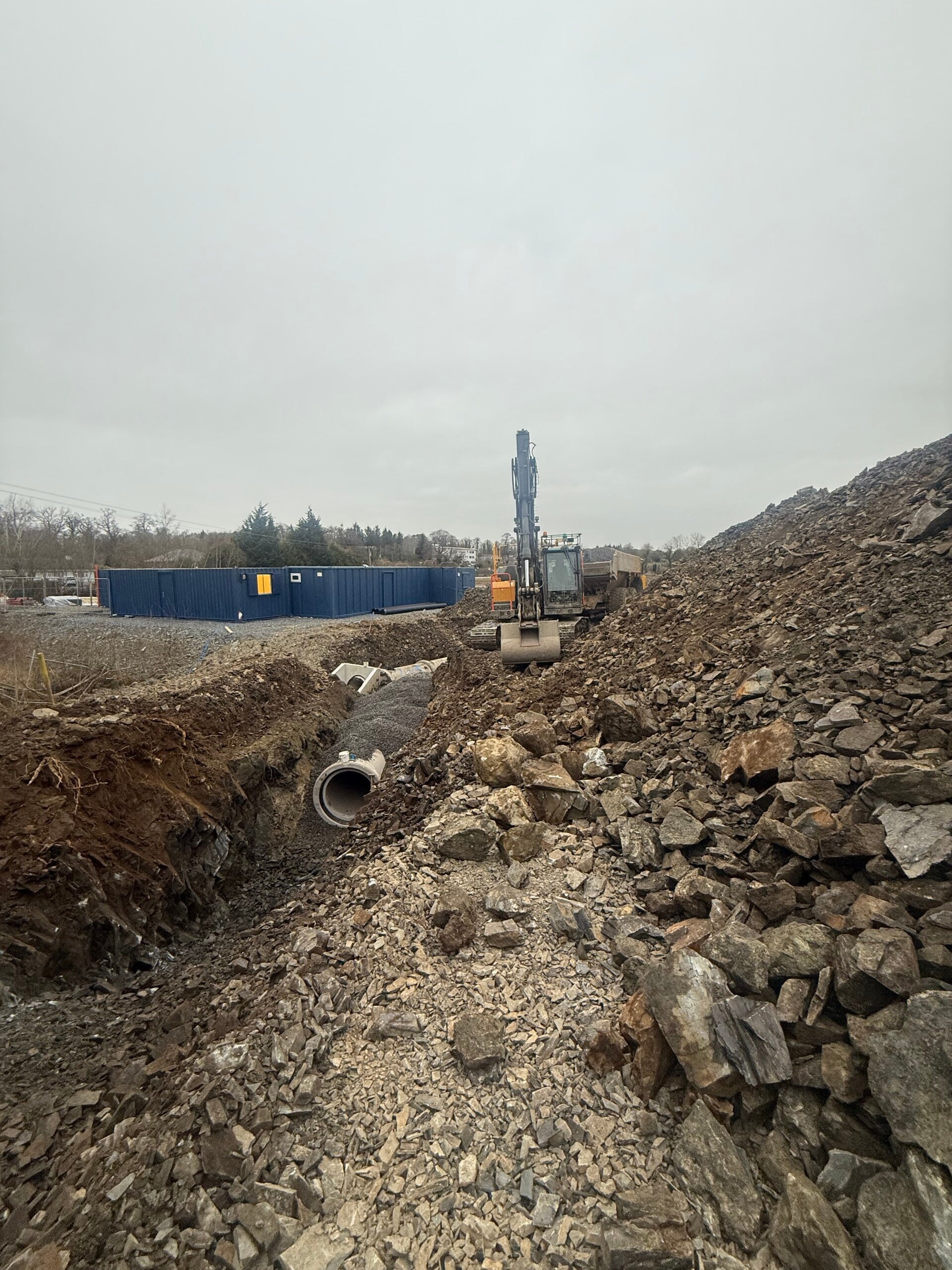 Our standout projects are large residential schemes where we have successfully delivered deep drainage and mainline infrastructure, foul and storm networks, watermains and ducting, raft foundations, footings, concrete works, paving, kerbing, culverts and associated civil works. With experienced site teams, our own plant fleet, in-house QS and safety support, we are equipped to deliver both specialist packages and full groundworks contracts to a high standard — on programme, efficiently managed and with a practical, site-led approach.